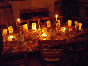 It means: hours at the table (hubby had to get used to this :-)) with several courses (yummy), a lot of laughing and talking (and translating) and the traditional gifts around midnight. I cannot wait to see everybody! (*smiles*). It is also our first holiday season as husband and wife 🙂