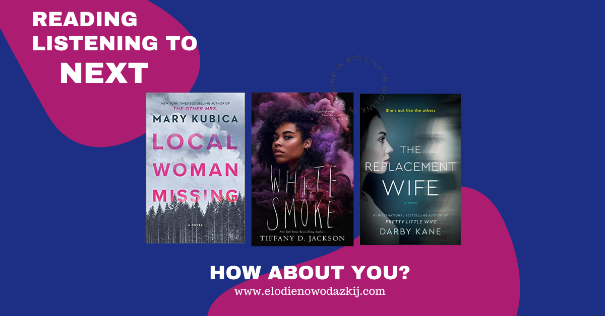 I’m in the mood for psychological thrillers and I think those three books will definitely fulfill that craving. Is that weird to say “craving” when it comes to psychological thrillers? Hmmm. I might either read or listen to them. If you’d like to read them, at the time of this post, both WHITE SMOKE and LOCAL WOMAN MISSING are on sale for $2.99… THE REPLACEMENT WIFE came out on Tuesday. 🙂