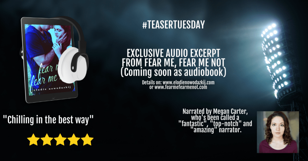Fans of Criminal Minds and the movie Scream and Lifetime movies: Are you ready for another excerpt of FEAR ME, FEAR ME NOT which is currently being recorded by the very talented audiobook narrator Megan Carter? I love, love, love love love how she’s bringing this story to life. All the characters and the atmosphere and just…everything.